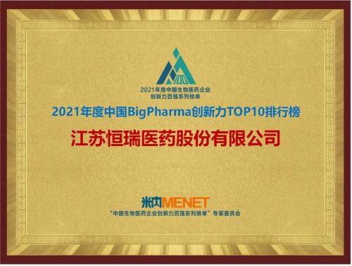 9月16日,由米内网主办的“2021年度中国生物医药企业创新力百强系列榜单”发布会在线上举办。AG真人平台医药继去年登顶“中国BigPharma企业创新力TOP10排行榜”后,今年再次名列该榜单首位。