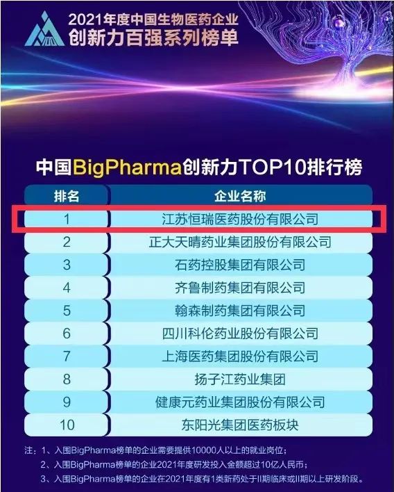 蝉联榜首!AG真人平台医药再次登顶“中国BigPharma企业创新力TOP10排行榜”